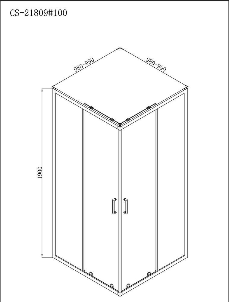 Душевое ограждение Loranto Neo, размер 1000х1000х1900 мм, профиль хром, стекло прозрачное 5 мм. Габариты регулировки (980-990)x(980-990)x1900 мм.