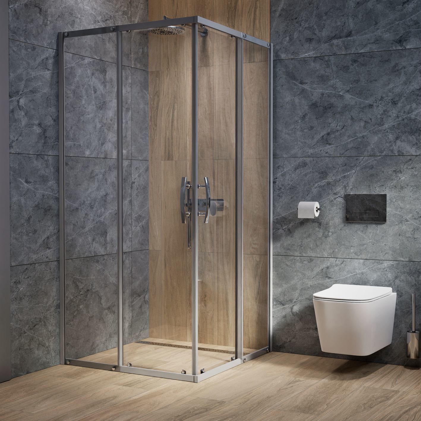 Душевое ограждение Mirsant Neo-90 Quadro 900х900х1900 мм. Профиль хром, стекло прозрачное 4 мм, ширина входа 559 мм. Поддон приобретается отдельно.