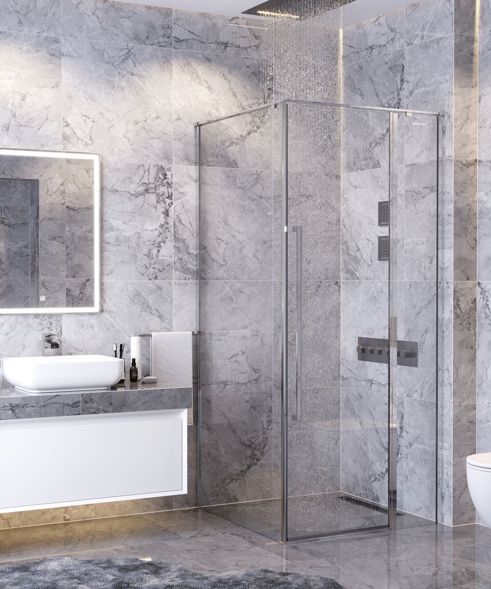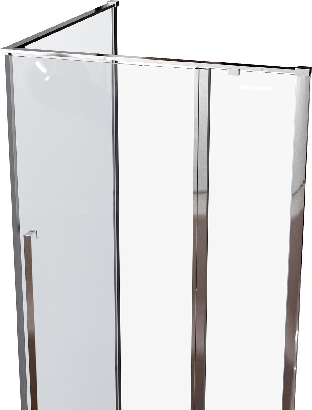Душевое ограждение Mirsant Next 1000х1000х2000 мм. Профиль хром, стекло прозрачное 6 мм. Поддон приобретается отдельно.