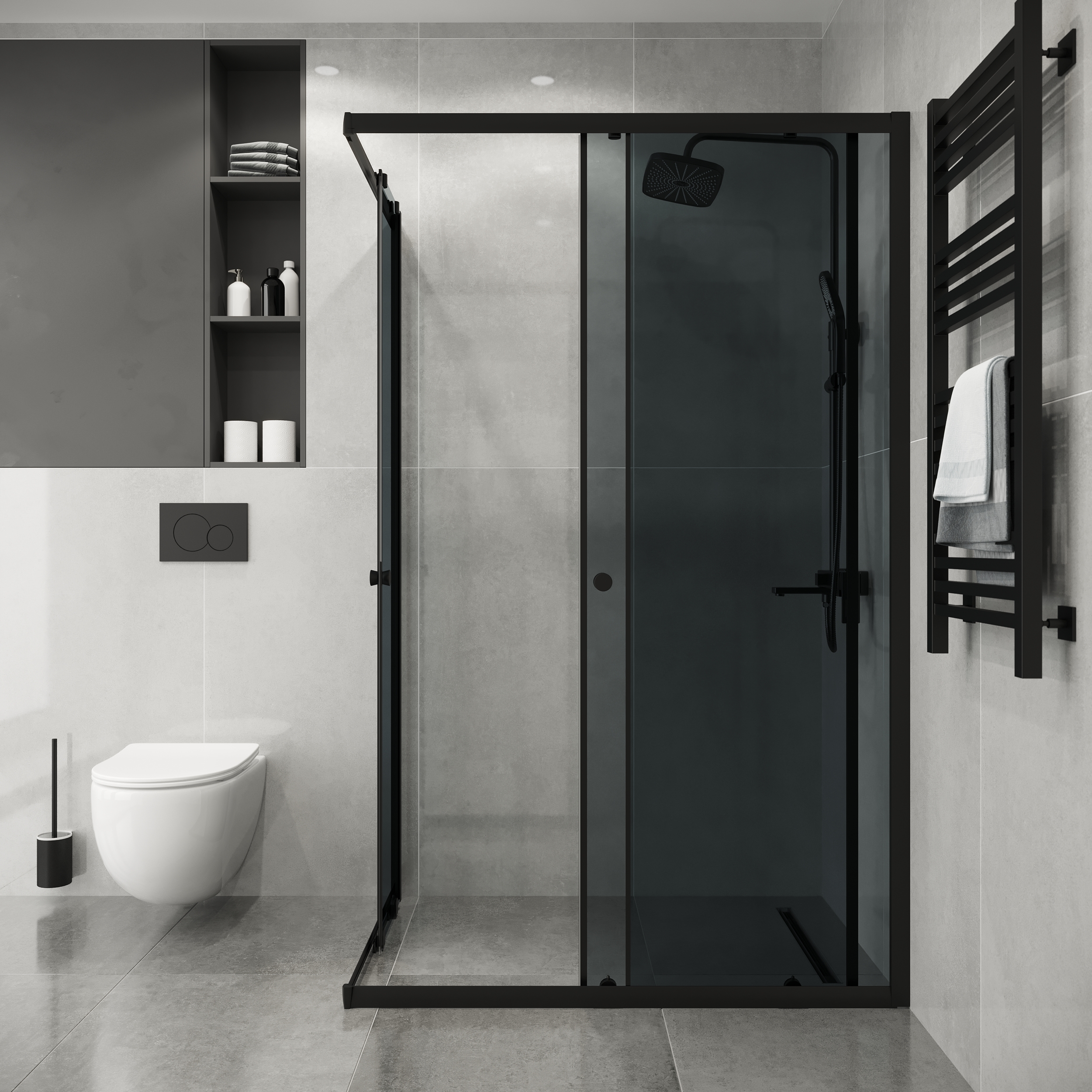 Душевое ограждение Niagara Eco NG-1018-14QT, размер 980x780x1900 мм, профиль чёрный матовый, стекло тонированное. Вход 550 мм.