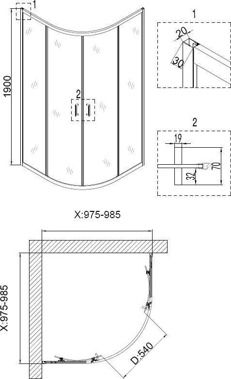 Душевое ограждение Niagara Nova NG-6807-08 BLACK 1000х1000х1900 мм, профиль – черный, стекло – прозрачное, 6 мм, ширина входа 540 мм, габариты с регулировками: 975-985x975-985 мм. Душевой поддон приобретается отдельно.
