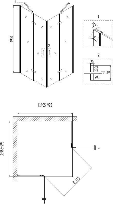 Душевое ограждение Niagara Nova NG-6814-08 BLACK 1000х1000х1900 мм, профиль – черный, стекло – прозрачное, 6 мм, ширина входа 715 мм, габариты с регулировками: 985-995x985-995 мм. Душевой поддон приобретается отдельно.