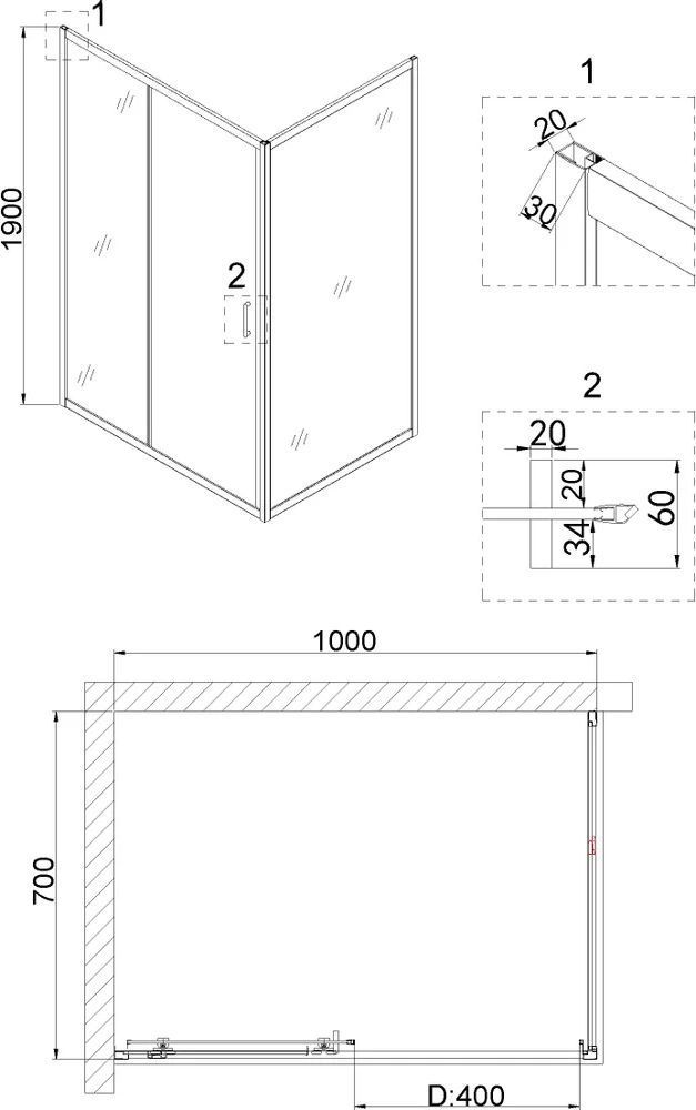 Душевое ограждение Niagara Nova NG-62-10A-A70 1000х700х1900 мм, профиль - хром, стекло - прозрачное, 6 мм, ширина входа 400 мм. Душевой поддон приобретается отдельно. Дверь 100 см, душевая стенка 70 см.