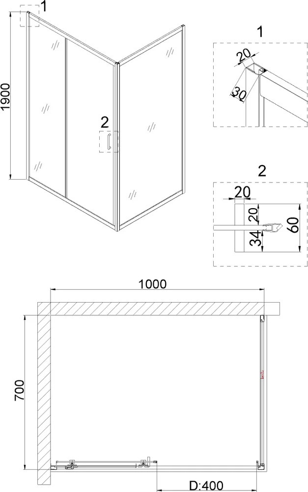Душевое ограждение Niagara Nova NG-82-10AB-NG-A70B 1000х700х1900 мм, профиль - черный, стекло - прозрачное, 6 мм, ширина входа 400 мм. Душевой поддон приобретается отдельно. Дверь 100 см, душевая стенка 70 см.