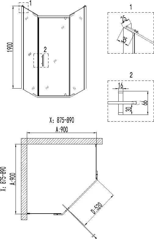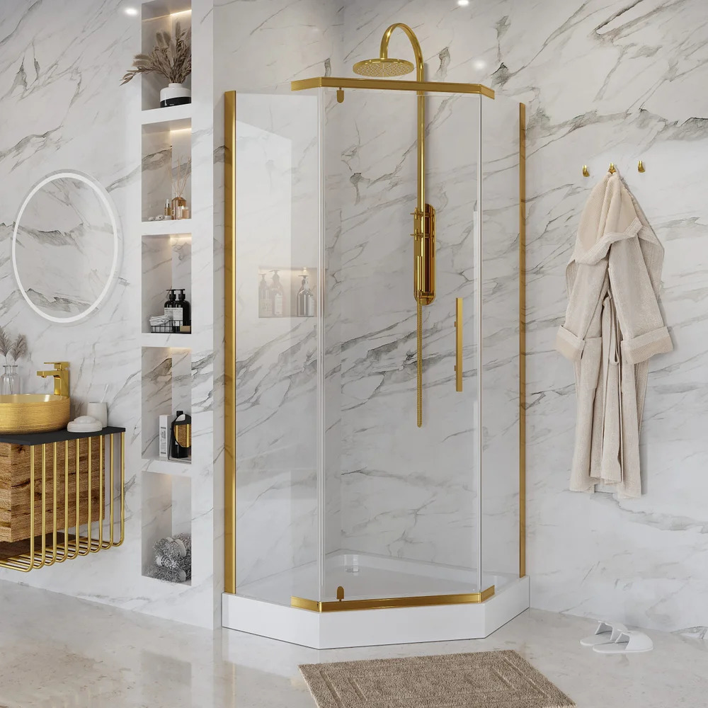 Душевое ограждение Niagara Nova NG-6405-08 900х900х1900 мм, профиль – желтое золото, стекло – прозрачное, 6 мм, ширина входа 520 мм, габариты с регулировками: 875-890x875-890 мм. Душевой поддон приобретается отдельно.