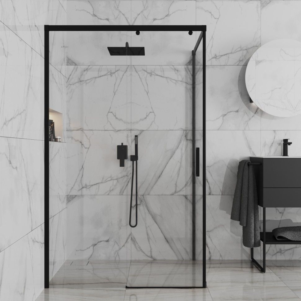 Душевое ограждение Paini Dax, размер 1200х800х2000 мм, профиль чёрный, стекло прозрачное: дверь 6 мм, боковые стенки 8 мм. Ширина входа 530 мм. Поддон приобретается отдельно.
