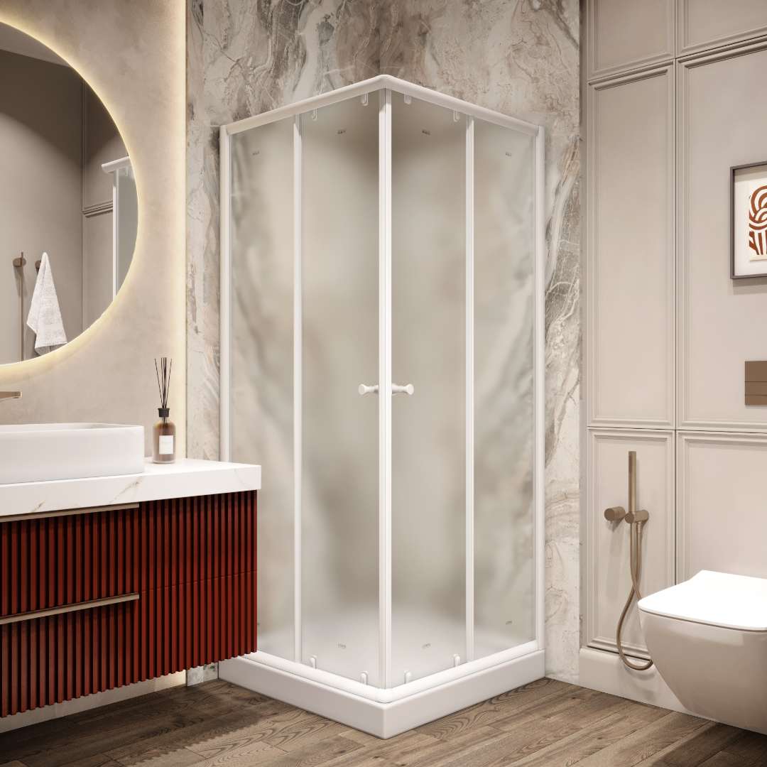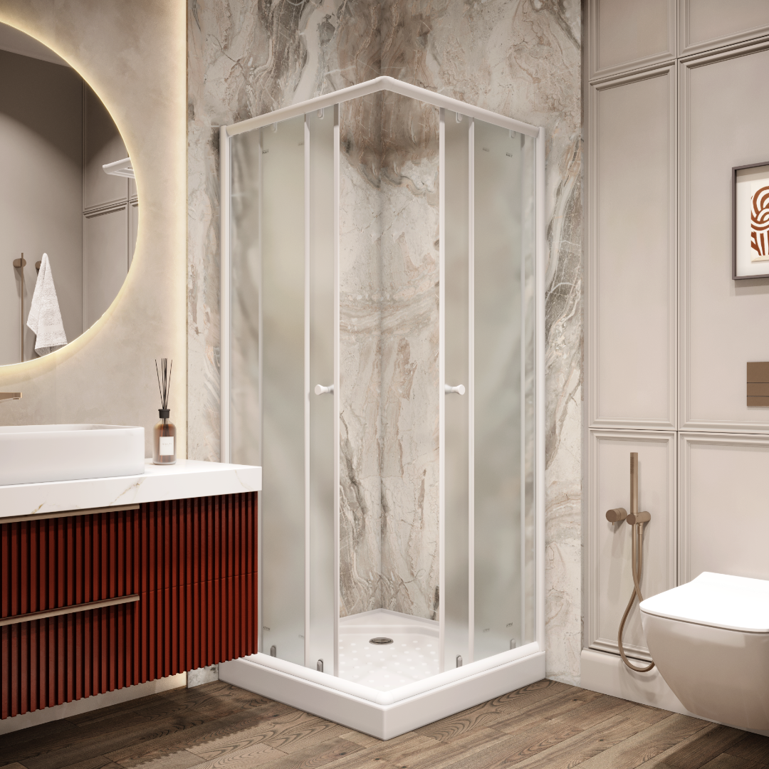 Душевое ограждение Parly 80х80 см ZFQ81, стекло - матовое, 4 мм, профиль - белый. В комплекте низкий поддон и сифон.