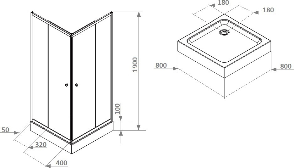 - Поддон белый из ABS-пластика, квадратный, с бортиком по периметру;