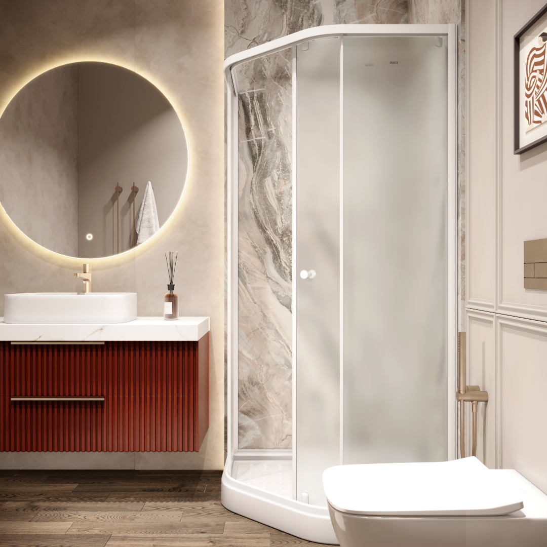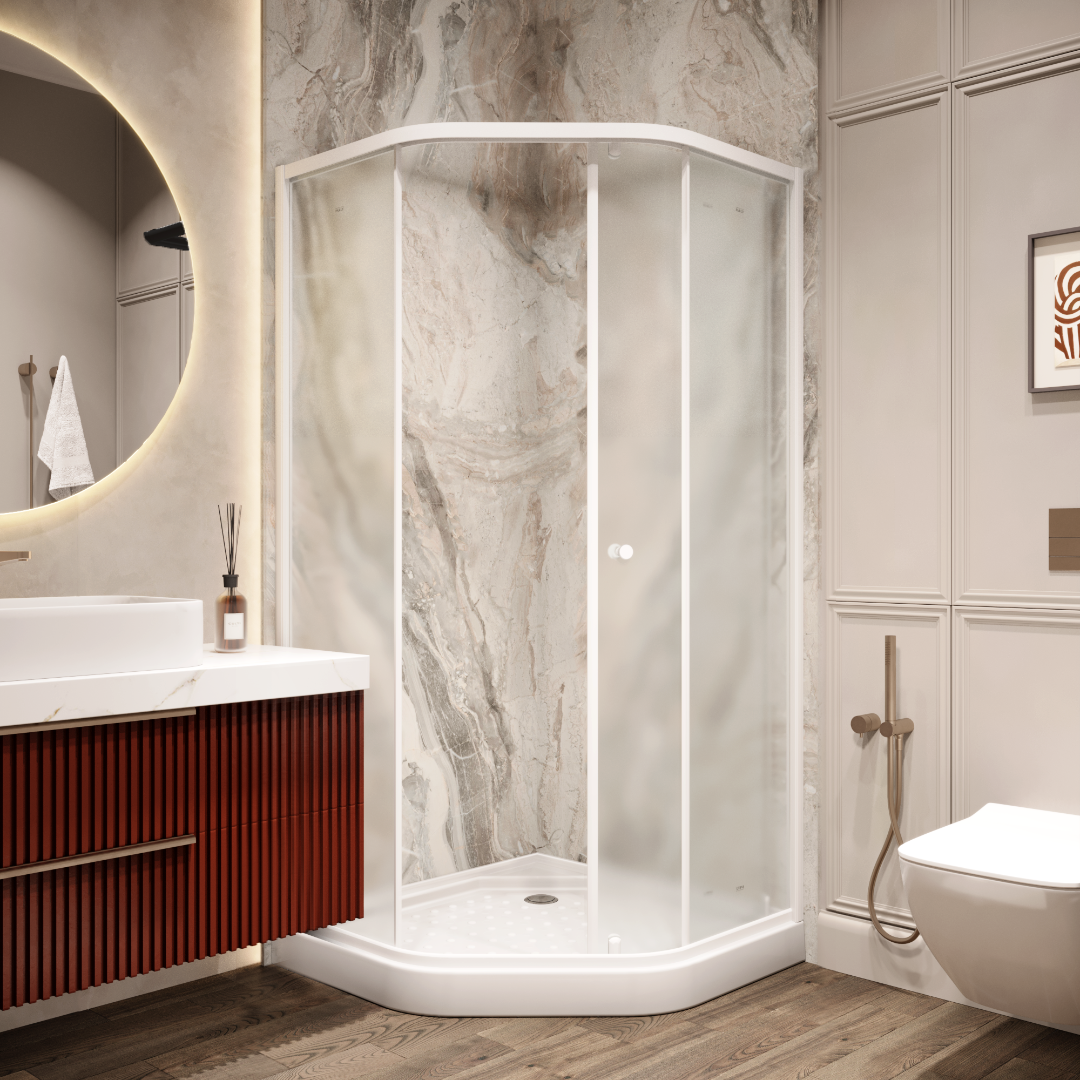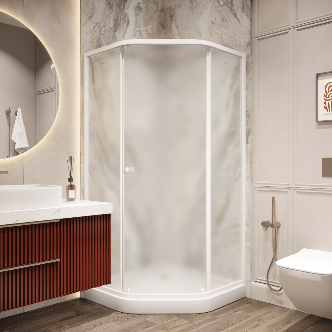 Душевое ограждение Parly 90х90 см ZEP91FR, стекло - матовое, 4 мм, профиль - белый. В комплекте низкий поддон и сифон.