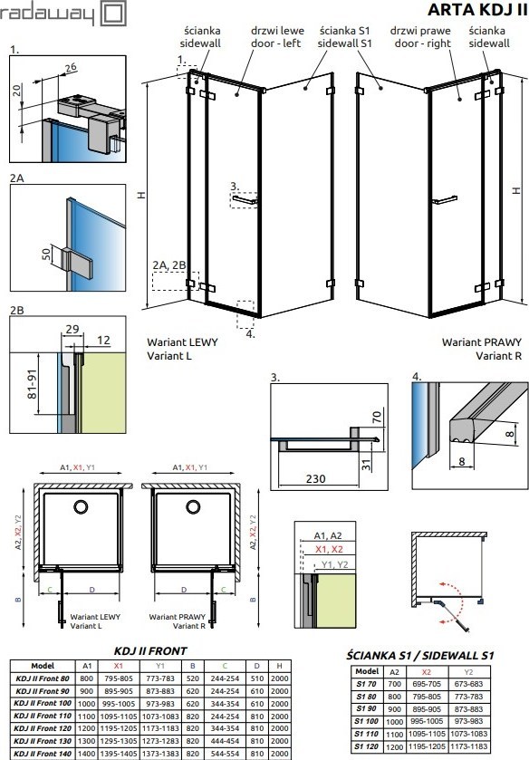 Душевое ограждение Radaway Arta KDJ II + S1 120х120 см L/R, хром/прозрачное