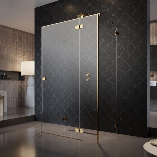 Душевое ограждение Radaway Essenza Pro Gold KDJ+S 1100х1000х2000 мм. Ширина входа - 705 мм. Профиль - золото, стекло - прозрачное, 6 мм. Поддон приобретается отдельно. Дверь 110 см, душевая стенка 100 см.