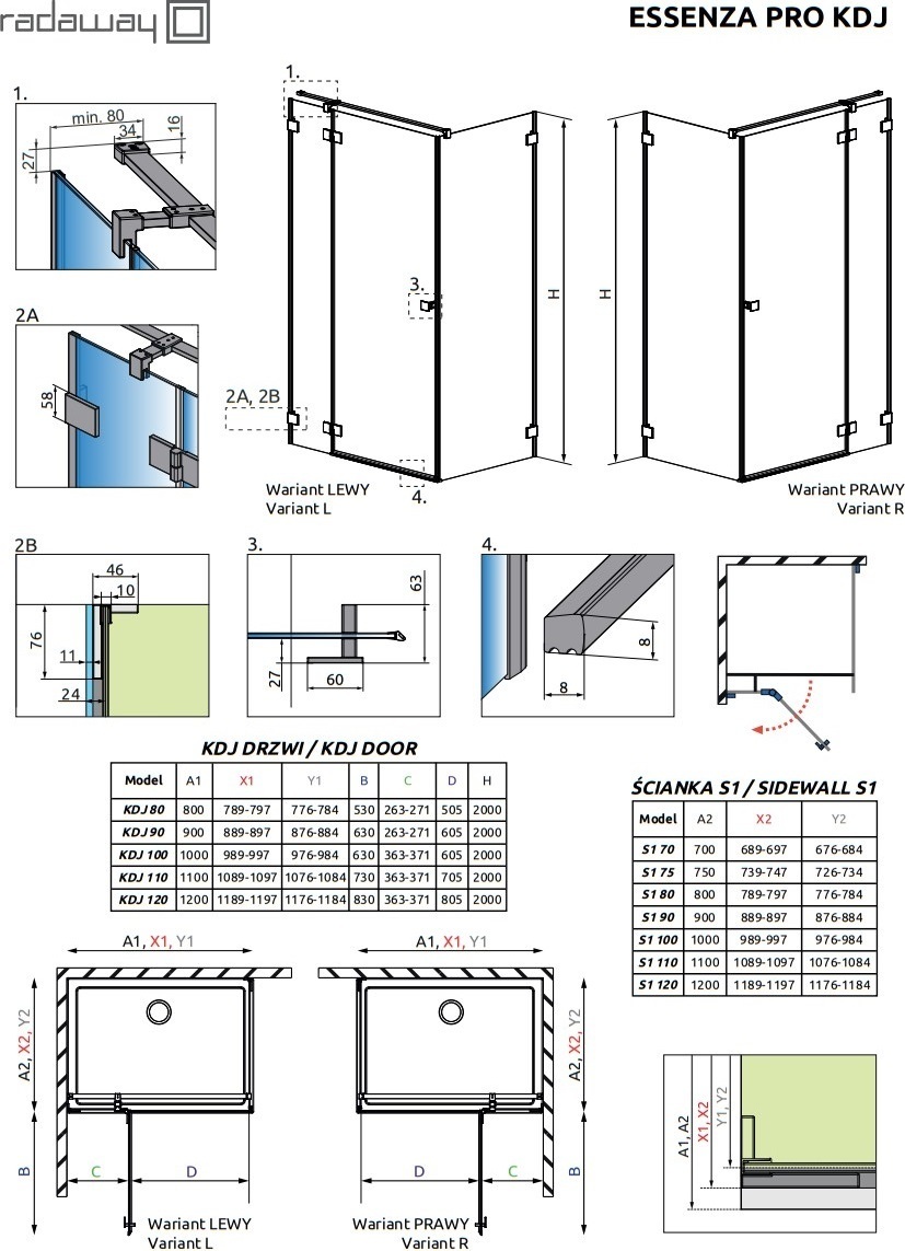Душевое ограждение Radaway Essenza Pro White KDJ 900х700х2000 мм. Профиль - белый, стекло - прозрачное 6 мм. Поддон приобретается отдельно. Дверь 90 см, душевая стенка 70 см.