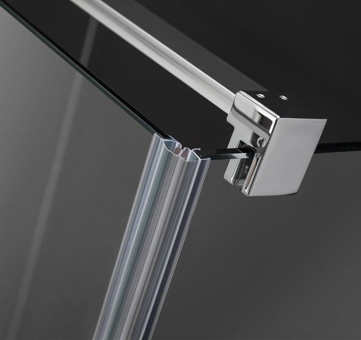 - Стекло крепится к стене с помощью кронштейнов. Два варианта: вместе с уплотнительным профилем, или без него.