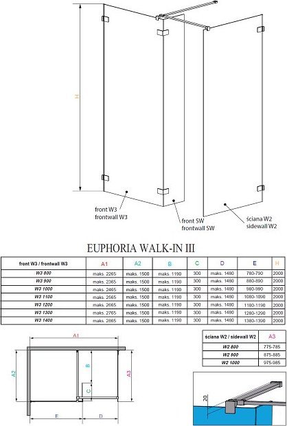 - В комплект входит: боковая стенка W2 90, фронтальная часть W3 120, боковая стенка SW 30, стабилизатор к потолку 8 мм.