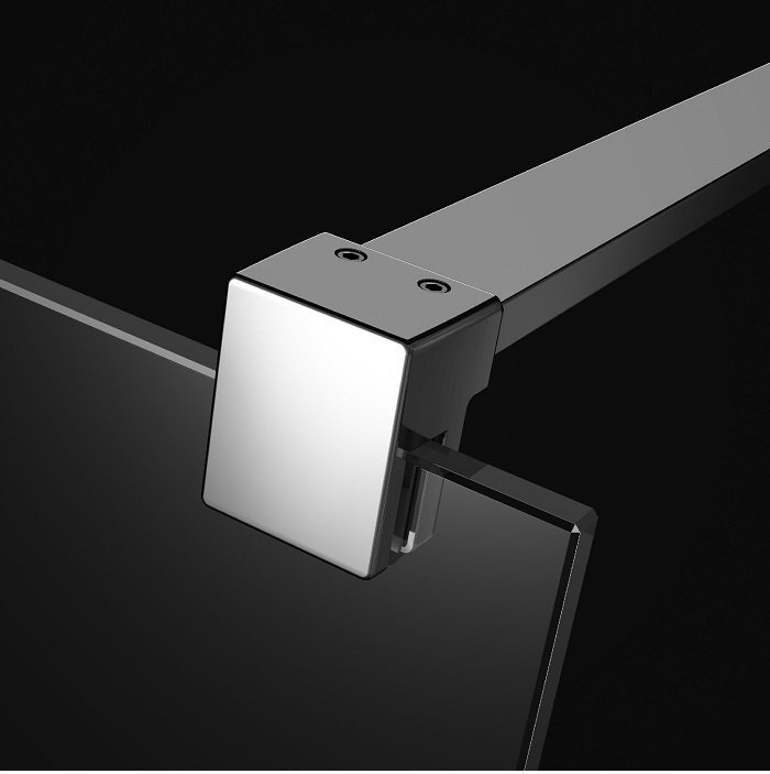 - Стекло крепится к стене с помощью кронштейнов. Два варианта: вместе с уплотнительным профилем, или без него.