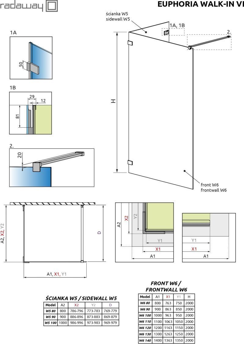Душевое ограждение Radaway Euphoria Walk-in VI 1100х900х2000 мм. Профиль - хром, стекло - прозрачное, 8 мм. Поддон приобретается отдельно.