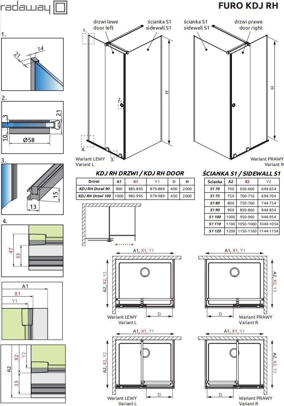 Душевое ограждение Radaway Furo Black KDJ RH 1000х700х2000 мм. Профиль - черный, стекло - прозрачное, 8 мм. Поддон приобретается отдельно. Дверь 100 см, душевая стенка 70 см.