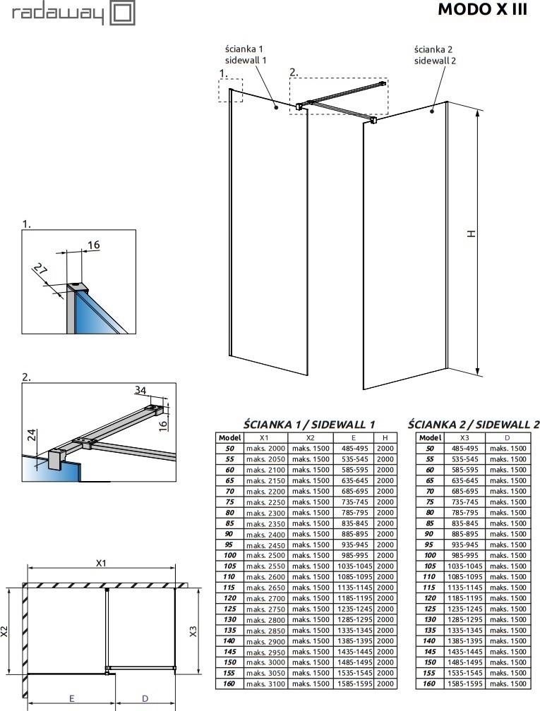 Душевое ограждение Radaway Modo X Black III 1200х800х2000 мм. Цвет профиля – черный, цвет стекла – прозрачное, 10 мм. В комплект входит 2 перегородки с держателем и промежуточный кронштейн.