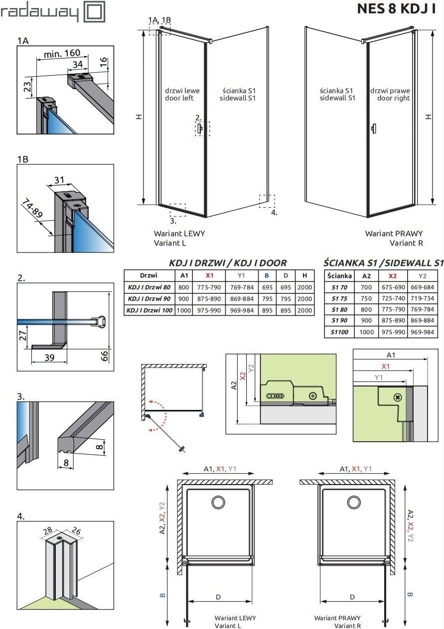 Душевое ограждение Radaway Nes 8 KDJ I 1000х750х2000 мм. Профиль - хром, стекло - прозрачное, 8 мм. Размеры с диапазоном регулировок: (975-990)x(725-740) мм. Ширина входа: 895 мм. Поддон приобретается отдельно. Дверь 100 см, душевая стенка 75 см.