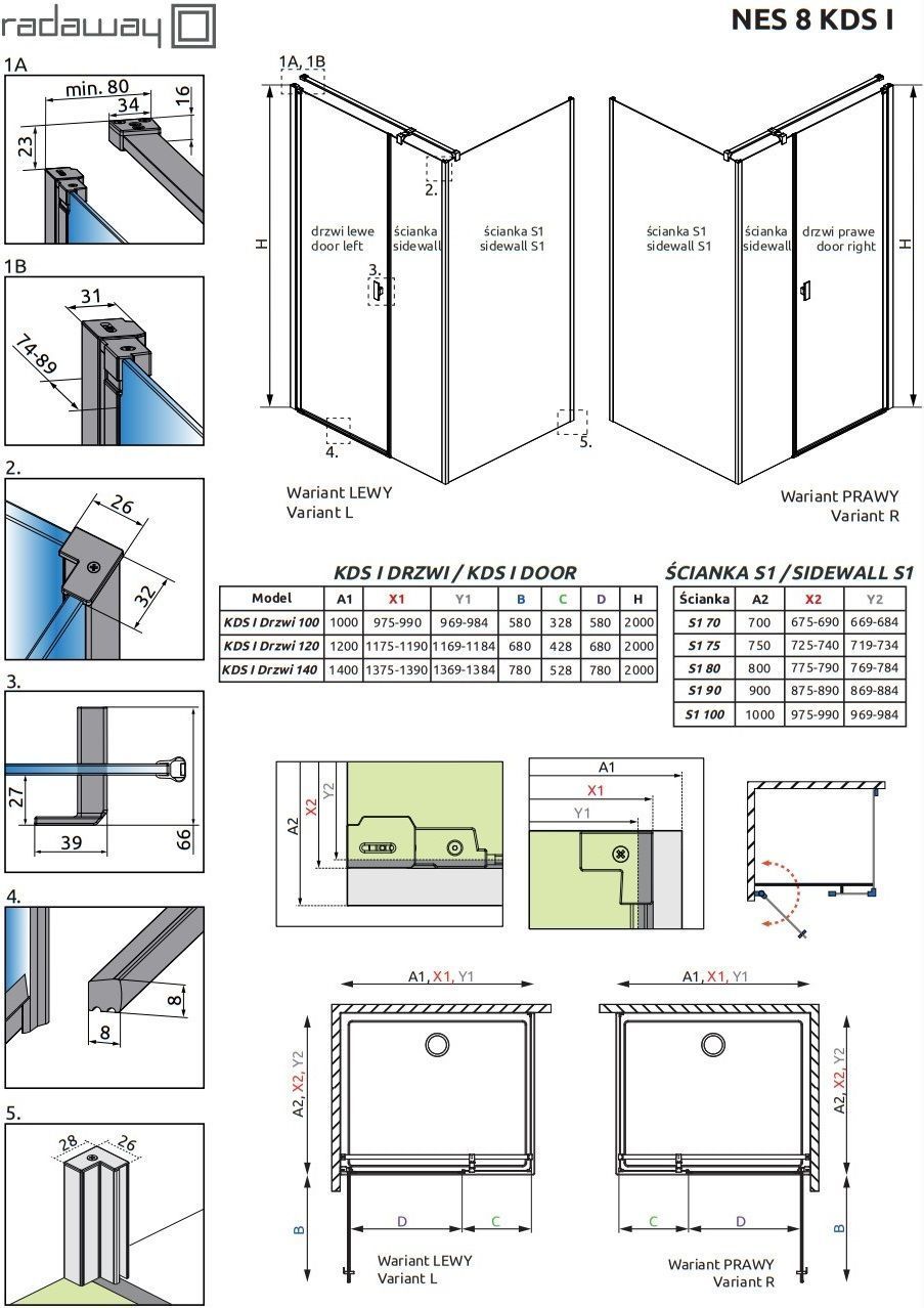 Душевое ограждение Radaway Nes 8 KDS I + S1 1400х1000х2000 мм. Профиль - хром, стекло - прозрачное, 8 мм. Размеры с диапазоном регулировок: (1375-1390)x(975-990) мм. Ширина входа: 780 мм. Поддон приобретается отдельно. Дверь 140 см, душевая стенка 100 см.