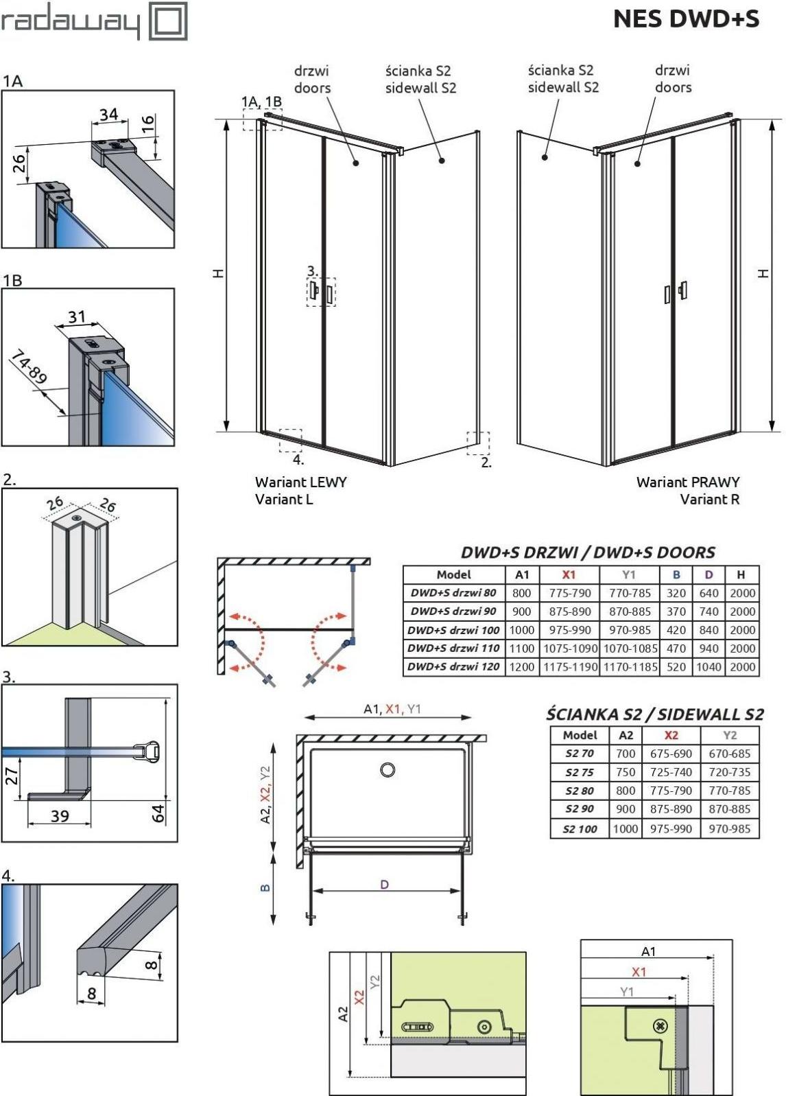 Душевое ограждение Radaway Nes Black DWD+S 800х700х2000 мм. Профиль - черный, стекло - прозрачное, 6 мм. Размеры с диапазоном регулировок: (775-790)x(675-690) мм. Ширина входа: 640 мм. Поддон приобретается отдельно. Дверь 80 см, душевая стенка 70 см.