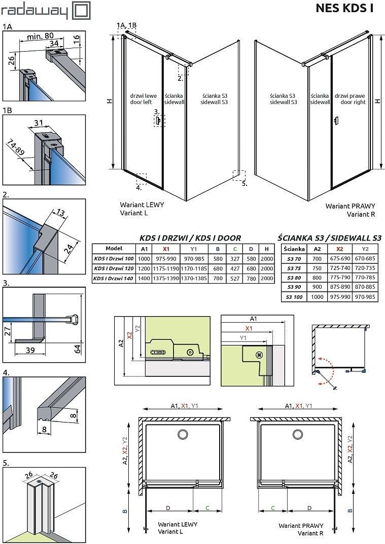 Душевое ограждение Radaway Nes Black KDS I 1200х750х2000 мм. Профиль - черный, стекло - прозрачное, 6 мм. Размеры с диапазоном регулировок: (1175-1190)x(725-740) мм. Ширина входа: 680 мм. Поддон приобретается отдельно. Дверь 120 см, душевая стенка 75 см.