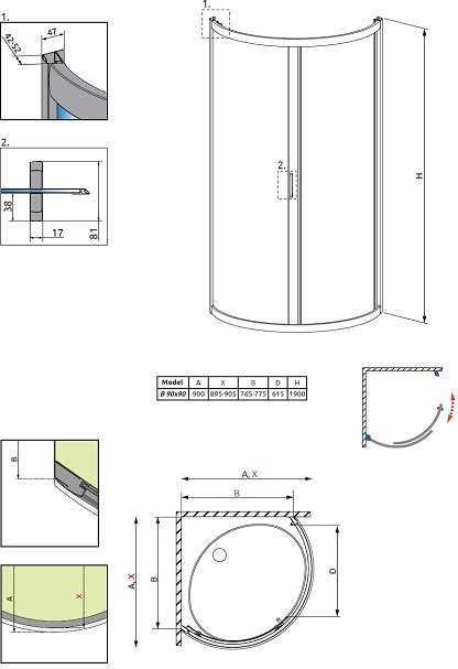 Душевое ограждение Radaway Premium Plus B 900*900*1900 мм. Профиль - хром, стекло - прозрачное 5 мм. Поддон приобретается отдельно.