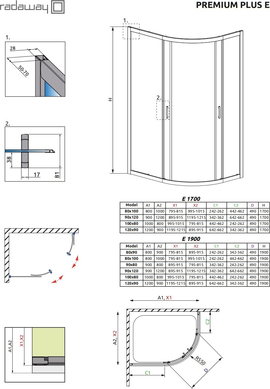 Душевое ограждение Radaway Premium Plus E 100х80х190 см, хром/матовое