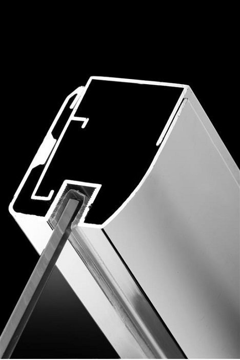 - Стекло крепится к стене с помощью пристенных профилей (с регулировкой).