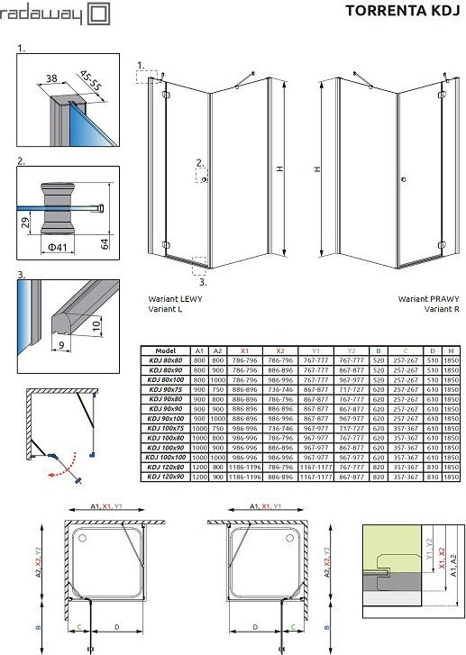 Душевое ограждение Radaway Torrenta KDJ 900*900*1850 мм. Профиль - хром, стекло - прозрачное 6 мм. Поддон приобретается отдельно. Душевое ограждение доступно в правом и левом вариантах (на фото левый вариант).