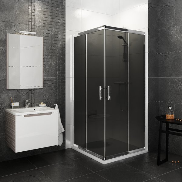 Душевое ограждение Ravak Blix BLRV2K-90, размер 90х90х190 см с угловым входом. Профиль - блестящий, стекло - Transparent, вход 500 мм.