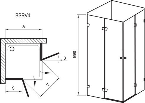 Душевое ограждение Ravak Brilliant BSRV4+BSRV4-100, размер 100х100х195 см четырехэлементное с угловым входом. Профиль хром, петли - хром, стекло - Transparent, вход 905 мм. Внимание! B SET (комплект креплений) приобретается отдельно.
