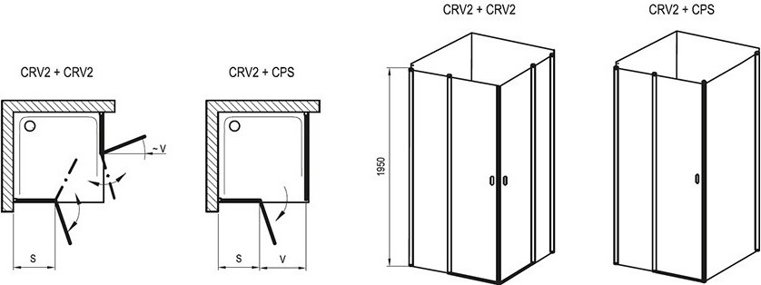 Душевое ограждение Ravak Chrome CRV2+CPS-90, размер 90х90х195 см, в комплекте металлический держатель. Профиль - сатин, стекло - Transparent, вход 460 мм.
