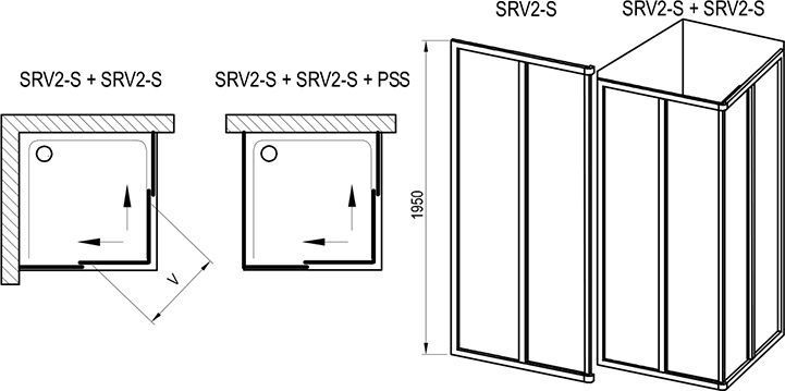 Душевое ограждение Ravak Supernova SRV2-S+SRV2-S-75, размер 75х75х195 см c угловым входом. Профиль сатин, витраж Pearl, вход 396 мм. Габариты регулировки (720х740)х1950 мм.