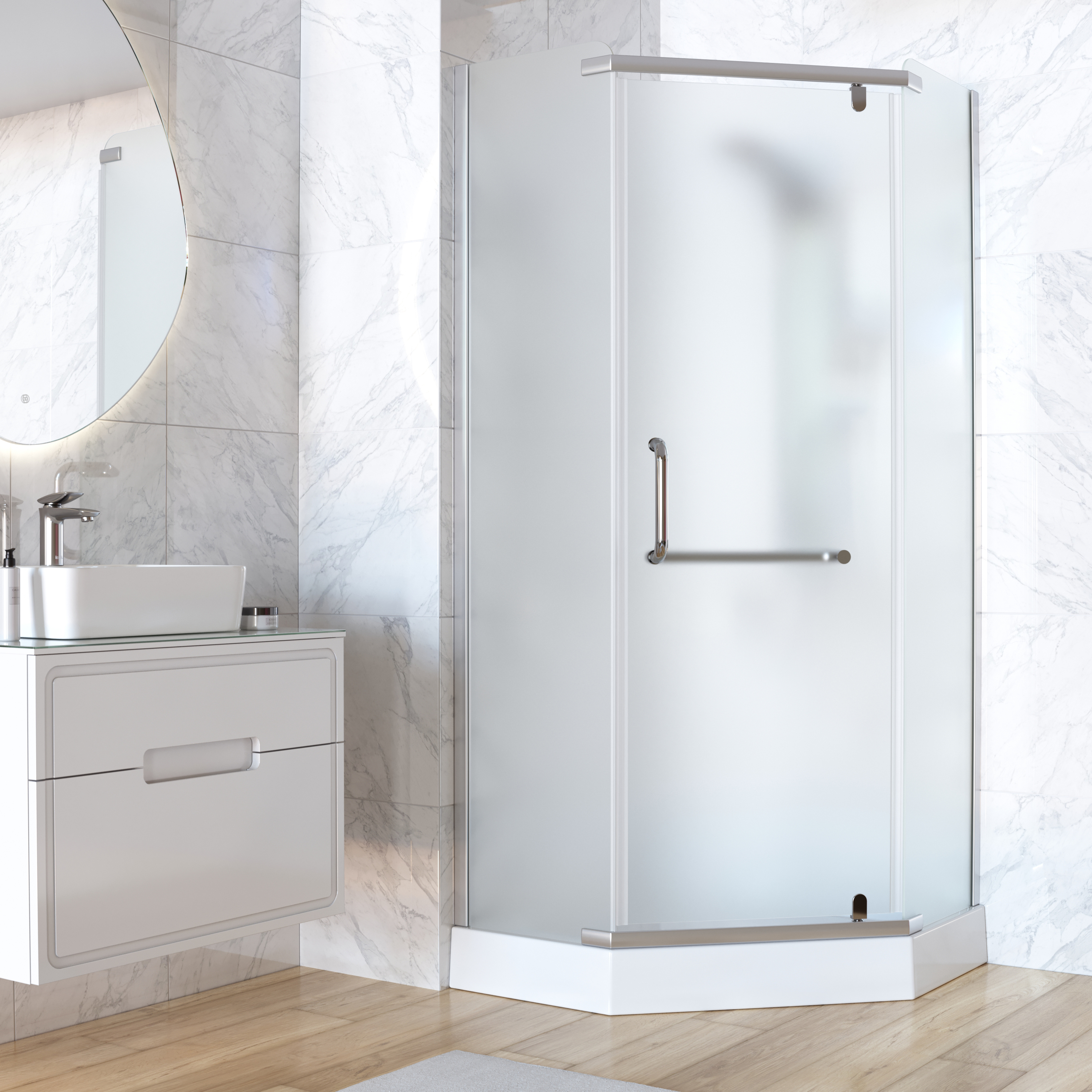 Душевое ограждение Taliente 900х900х1950 мм, профиль - хром, стекло - матовое 6 мм, ширина входа - 510 мм. Поддон приобретается отдельно.