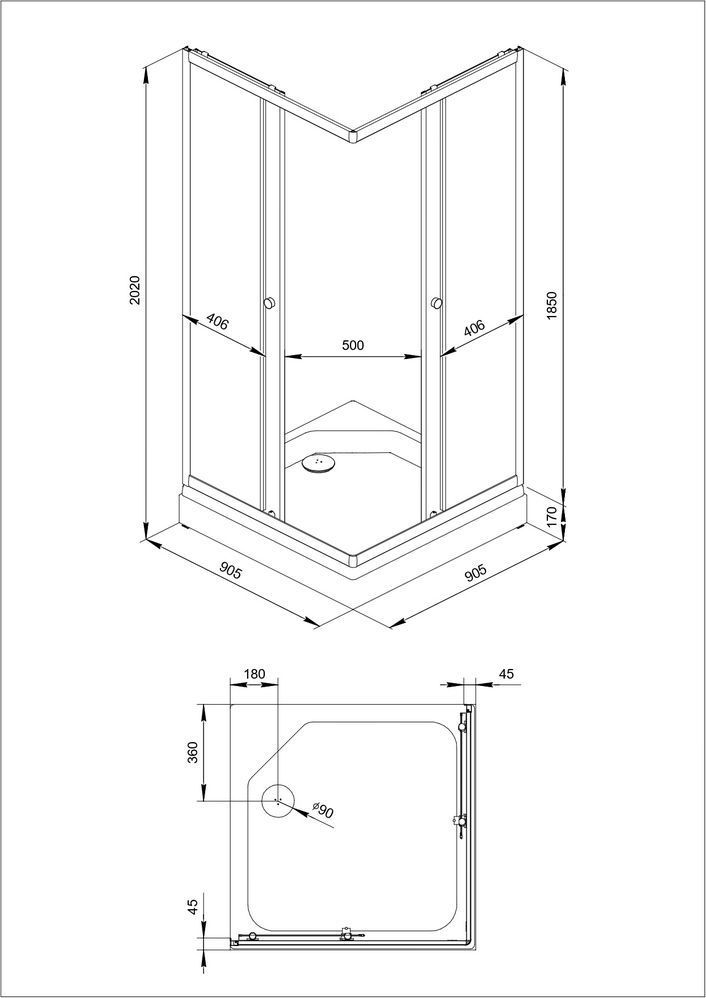 Душевое ограждение Triton Вента 900x900x2020 мм с низким поддоном и сифоном в комплекте, стекло 4 мм.