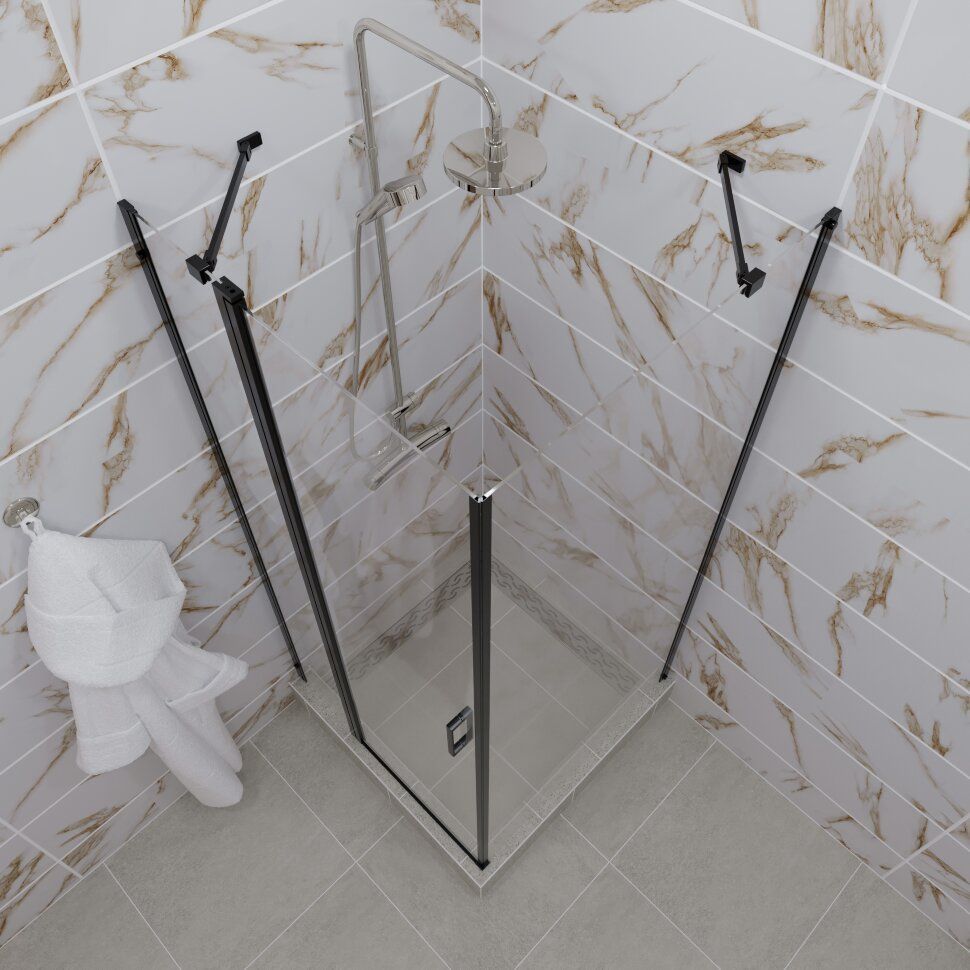 Душевое ограждение Triton Йота с держателями, размер 900x900х1900 мм, профиль чёрный, стекло прозрачное. Поддон приобретается отдельно.