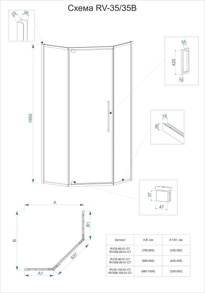 Описание Душевое ограждение Veconi RV35-100-01-C7