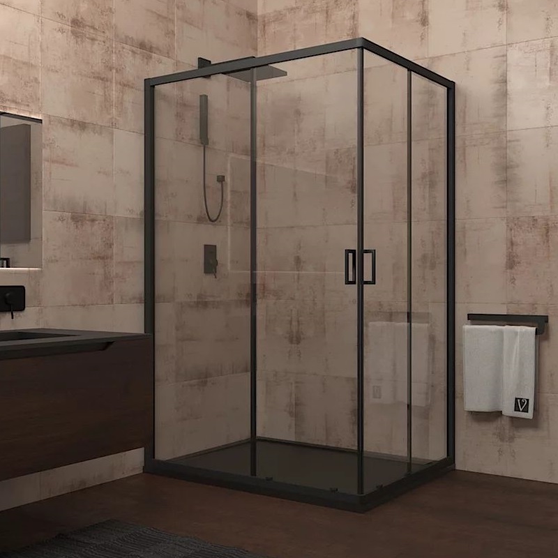 Душевое ограждение Veconi Rovigo, размер 100х80х195 см, профиль чёрный, стекло прозрачное, вход 490 мм. Габариты регулировки (980-1000)х(780х800)х1950 мм.