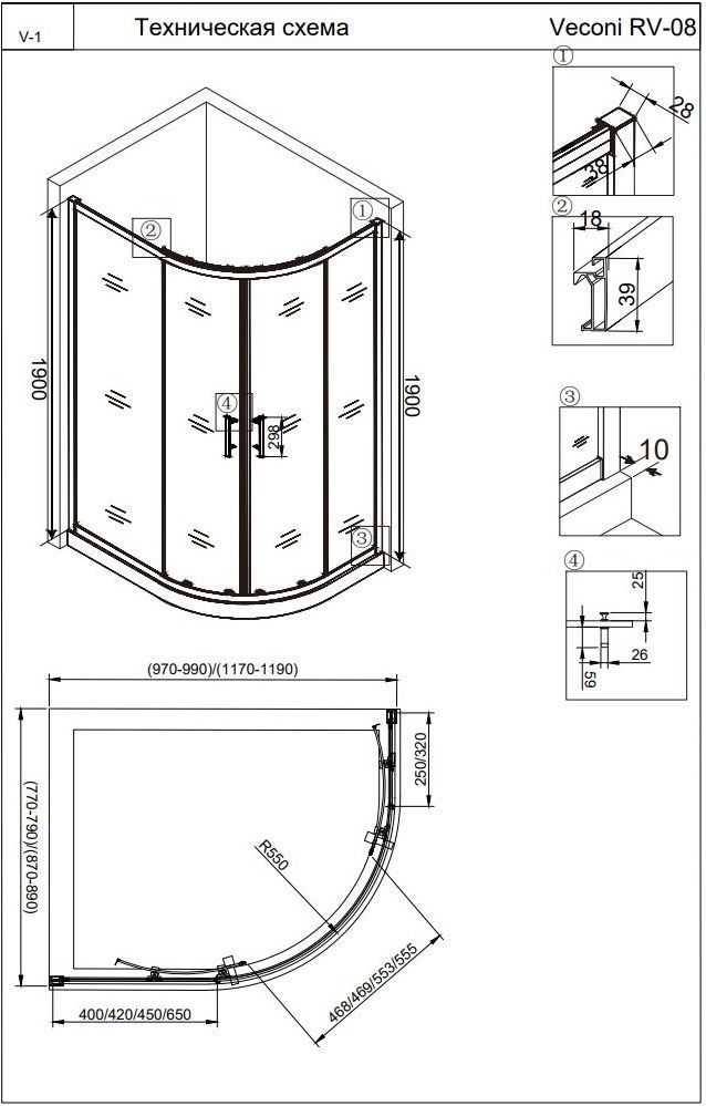 Описание Душевое ограждение Veconi RV08-12090A-01-19C3