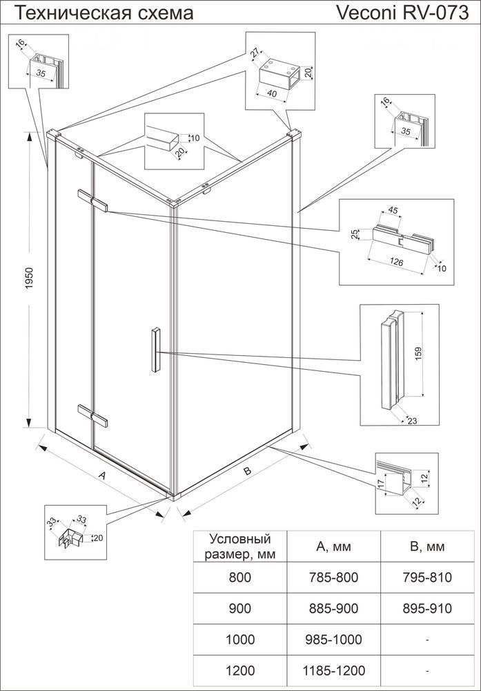 Характеристики Душевое ограждение Veconi (RV073B-120100-01-C4)