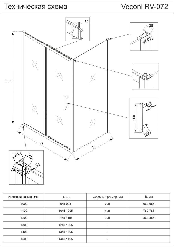 Характеристики Душевое ограждение Veconi (RV072B-130100-01-C4)