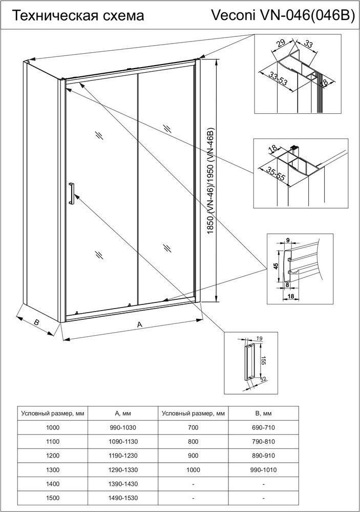 - Данная модель состоит из раздвижной двери VN-46B и боковой панели KP-03B