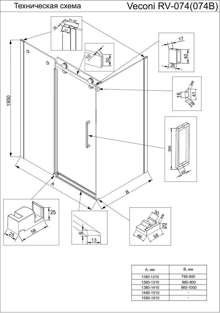 Описание Душевое ограждение Veconi RV074B-13090-01-C4