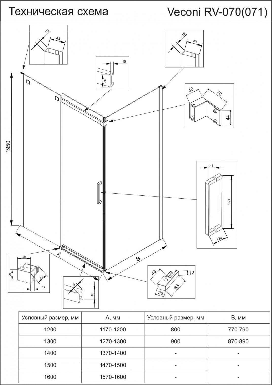 Характеристики Душевое ограждение Veconi (RV070G-15080-01-C4)