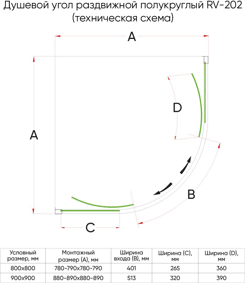 Описание Душевое ограждение Veconi RV202G-90-01-C4