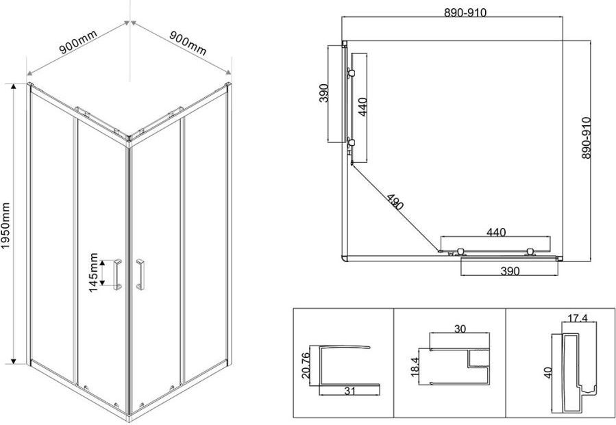 - Габариты с диапазоном регулировок: 890-910 x 890-910 мм