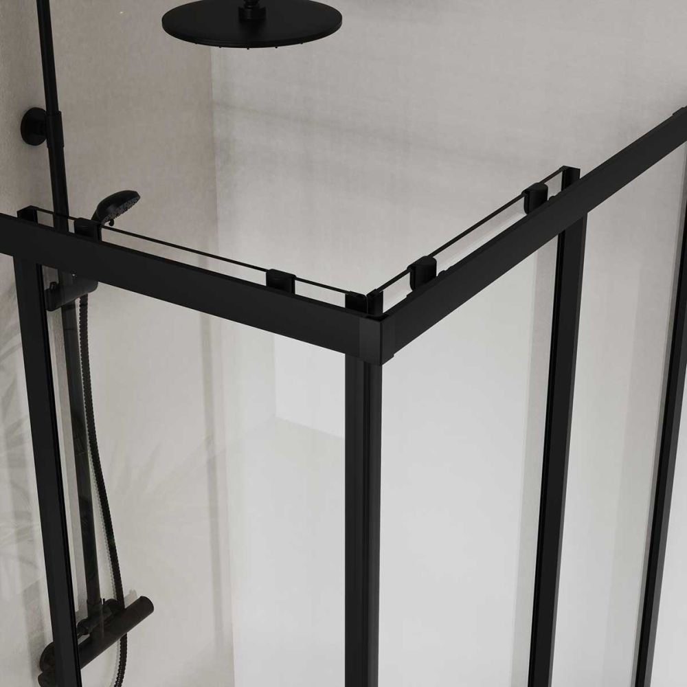 Душевое ограждение Vincea City 900х900х1950 мм, профиль - черный, стекло - прозрачное 5 мм, ширина входа - 490 мм, габариты с диапазоном регулировок: 890-910 x 890-910 мм. Поддон приобретается отдельно.