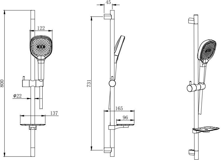 - передвижной держатель лейки 3 х режимная душевая лейка