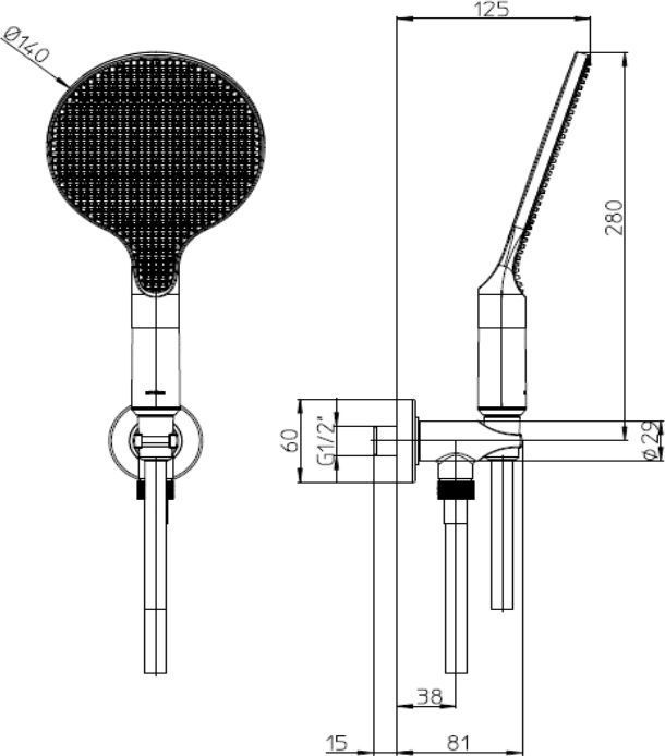 - Душ Ø 140 мм с водорозеткой скрытого монтажа